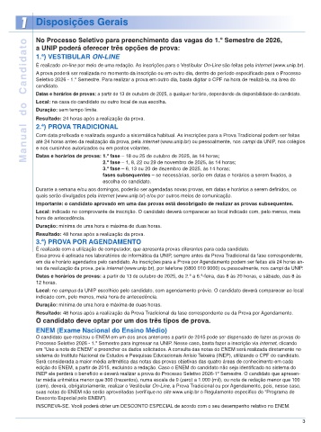 Page 3 - Manual do Candidato | Vestibular 2026/1 - Brasília, Goiânia e Manaus | Universidade Paulista - UNIP
