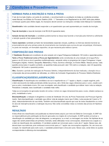 Page 5 - Manual do Candidato | Vestibular 2026/1 - Interior e Litoral do Estado de São Paulo | Universidade Paulista - UNIP